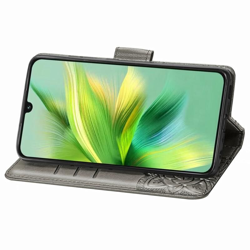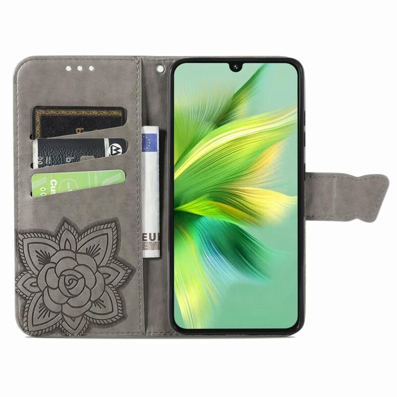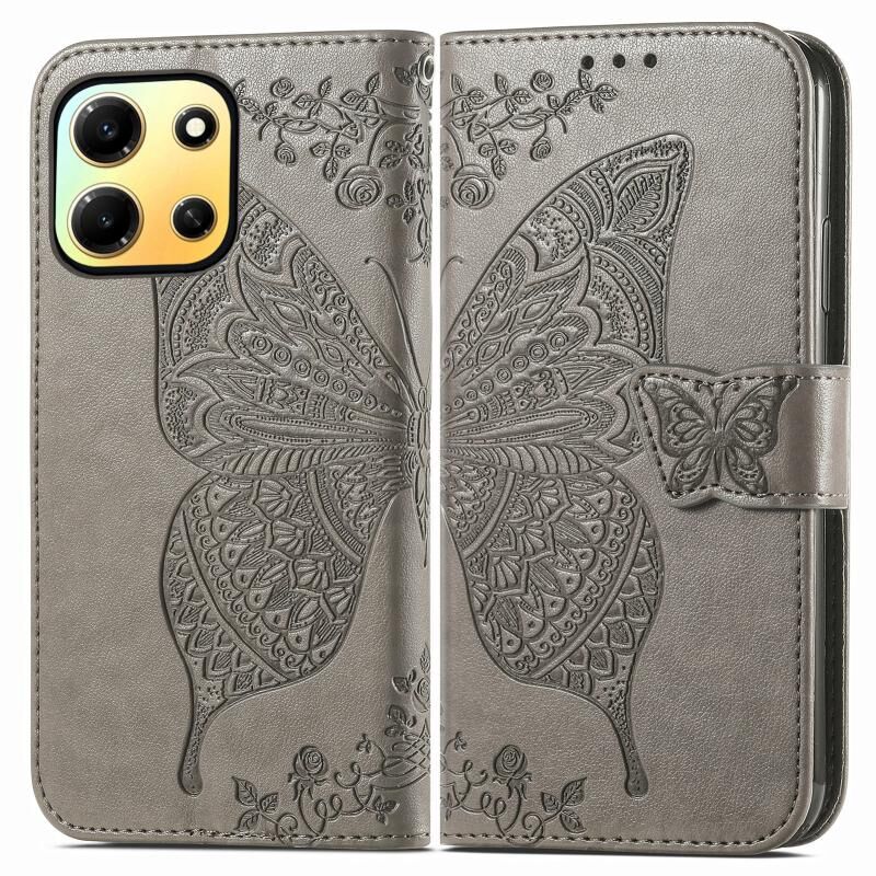 Θήκη τηλεφώνου από δέρμα με ανάγλυφο σχέδιο πεταλούδας και λουλουδιών για Infinix Note 30i (Μαύρο)