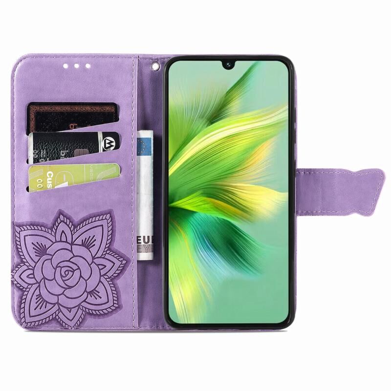 Θήκη τηλεφώνου από δέρμα με ανάγλυφο σχέδιο πεταλούδας και λουλουδιών για Infinix Note 30i (Μαύρο)