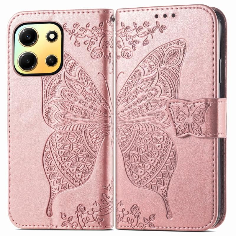 Θήκη τηλεφώνου από δέρμα με ανάγλυφο σχέδιο πεταλούδας και λουλουδιών για Infinix Note 30i (Μαύρο)