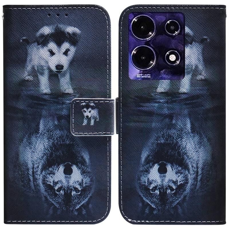 Θήκη τηλεφώνου από δέρμα με σχέδιο flip για Infinix Note 30i (Λύκος και Σκύλος)
