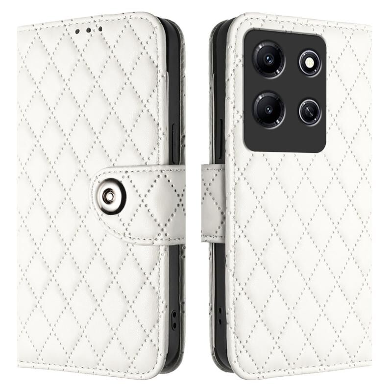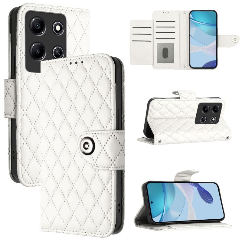 Για το Infinix Note 30i Rhombic Texture Flip δερμάτινη θήκη τηλεφώνου με κορδόνι (λευκό)