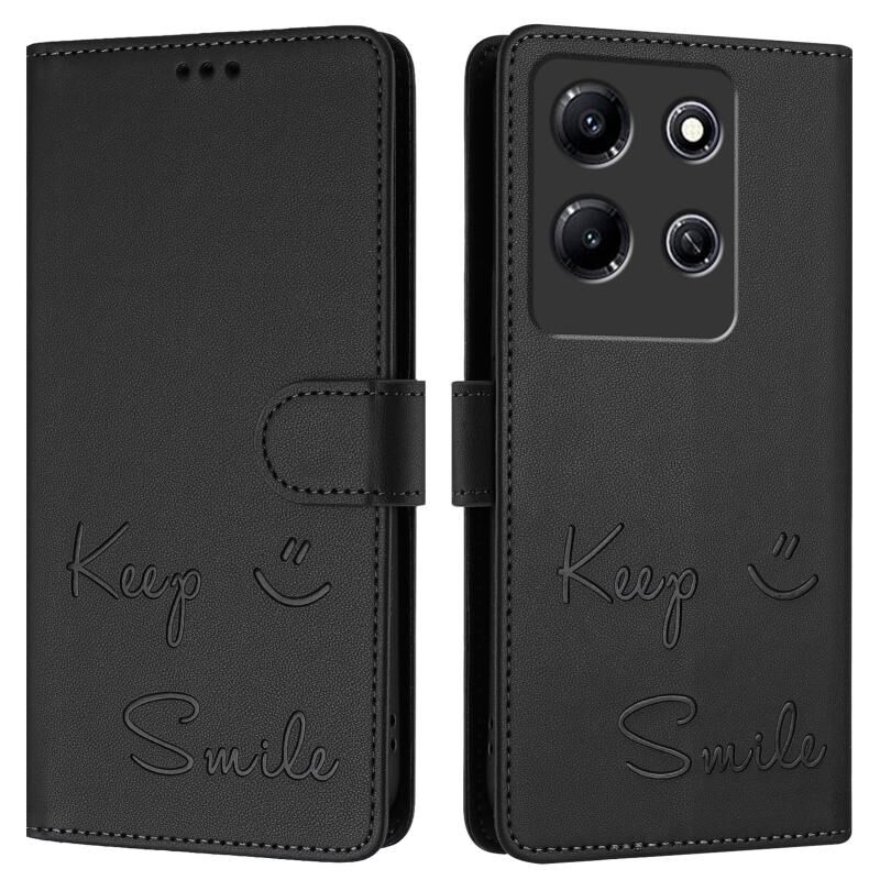 Για Infinix Σημείωση 30i Χαμόγελο ανάγλυφο RFID δερμάτινη θήκη τηλεφώνου (Μαύρο)