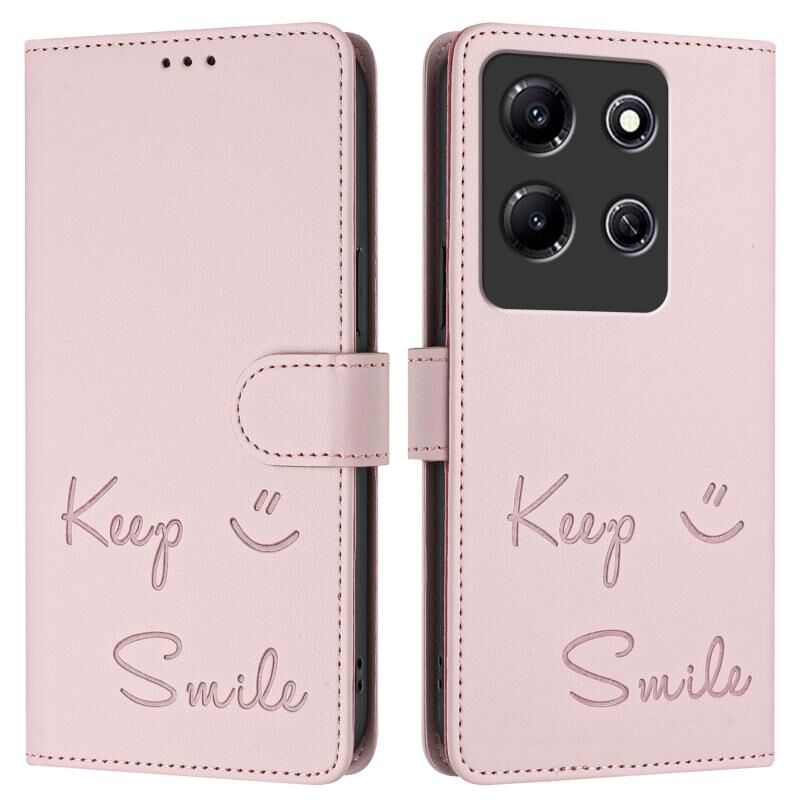 Για Infinix Σημείωση 30i Χαμόγελο ανάγλυφο RFID δερμάτινη θήκη τηλεφώνου (ροζ)