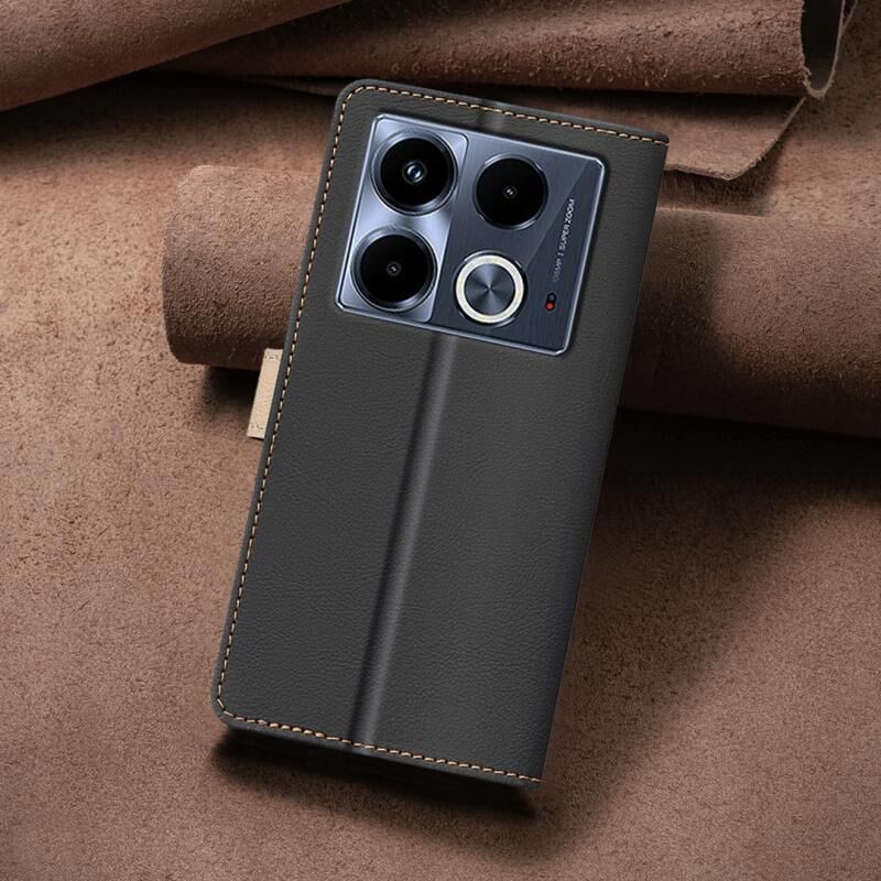 Θήκη τηλεφώνου από δέρμα με αντικλεπτική τεχνολογία RFID και χρωματική αντιστοίχιση για Infinix Note 40 4G (Καφέ)