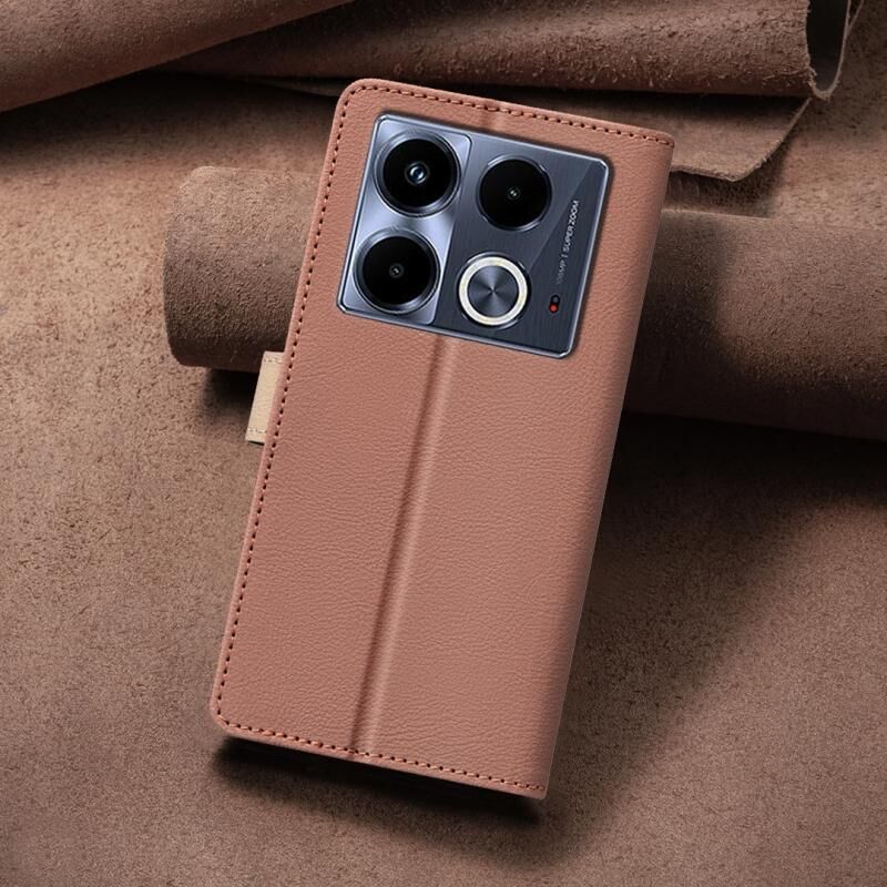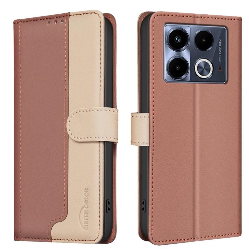Θήκη τηλεφώνου από δέρμα με αντικλεπτική τεχνολογία RFID και χρωματική αντιστοίχιση για Infinix Note 40 4G (Καφέ)