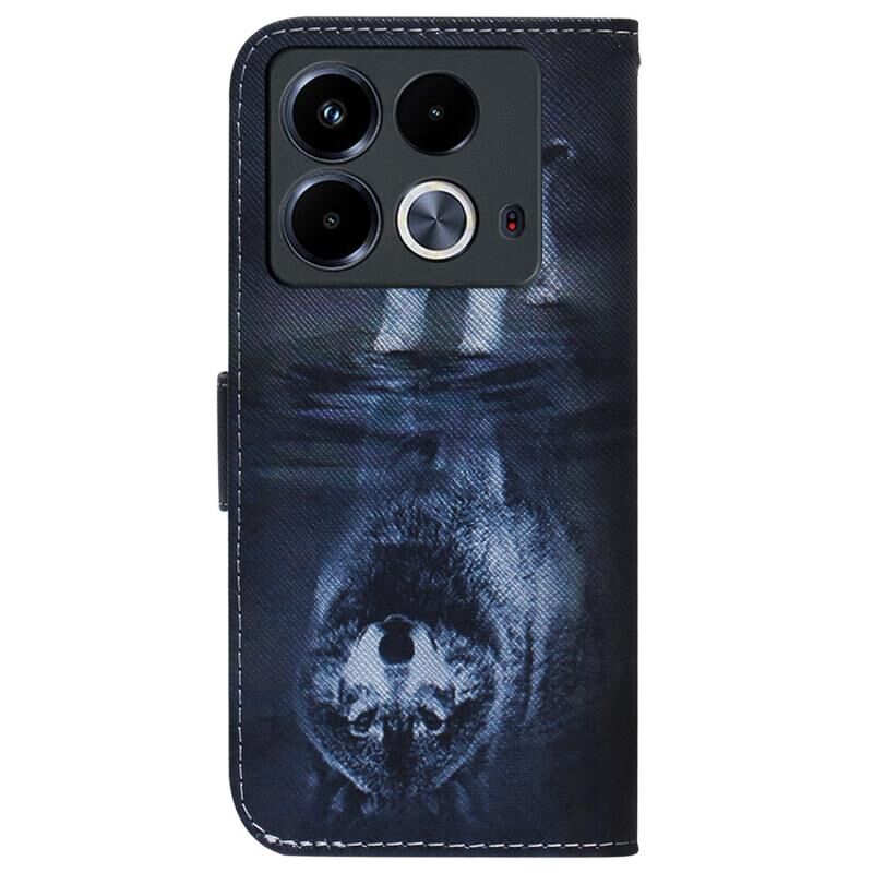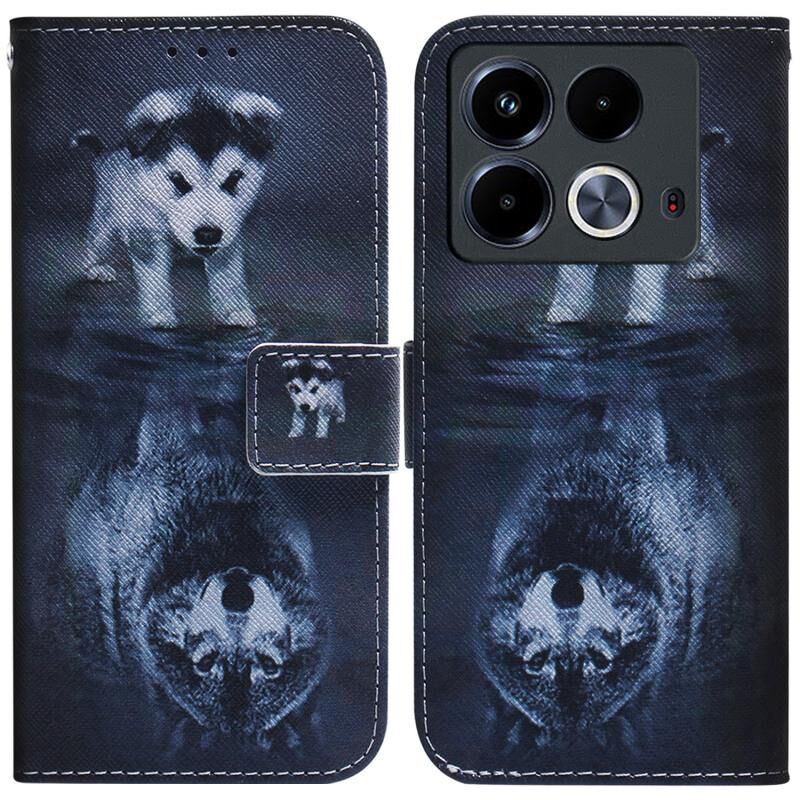 Θήκη τηλεφώνου από δέρμα με σχέδιο flip και χρώματα για Infinix Note 40 4G (Λύκος και Σκύλος)