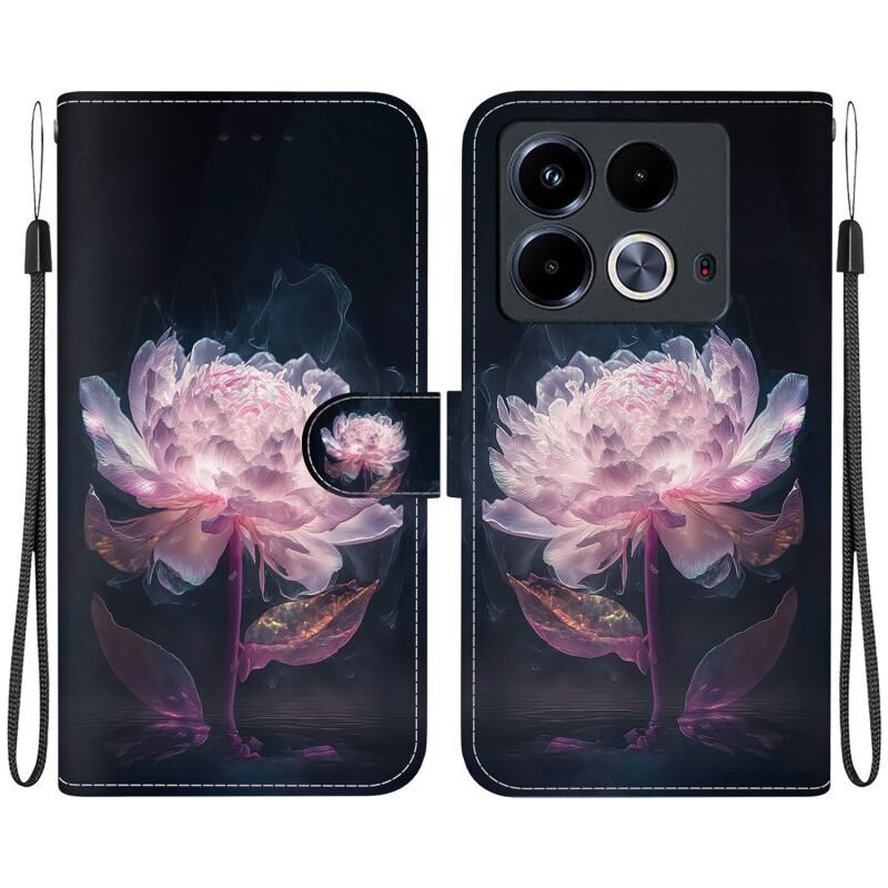 Θήκη τηλεφώνου από δέρμα με πολύχρωμη σχεδίαση και κρυσταλλική υφή για Infinix Note 40 4G (Μωβ Παιώνια)