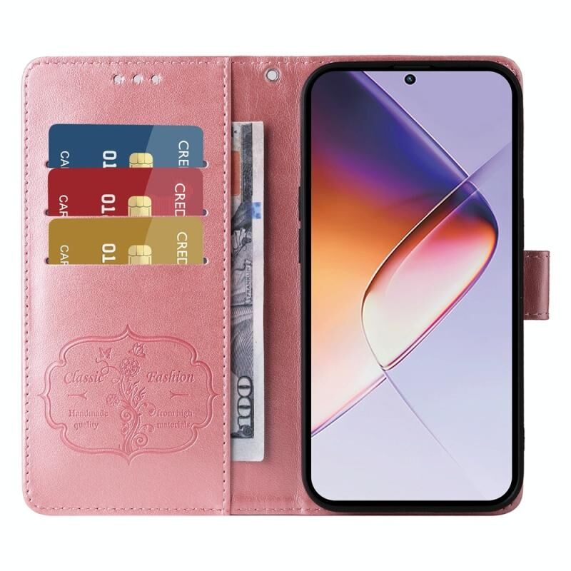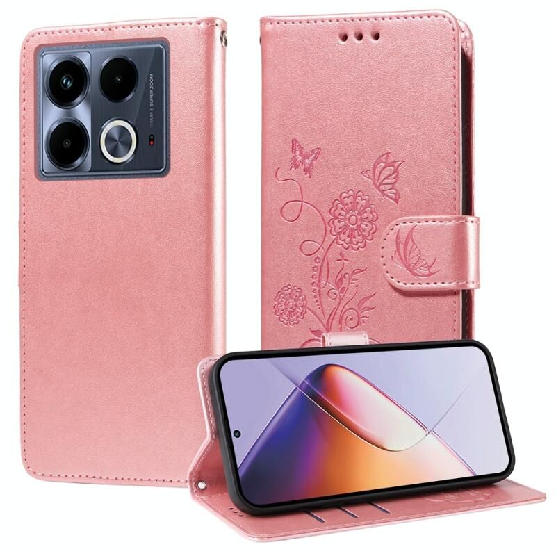 Θήκη τηλεφώνου από δέρμα με ανάγλυφα λουλούδια πεταλούδας για Infinix Note 40 4G (Μωβ)