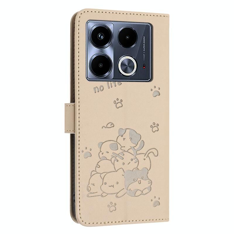 Θήκη δέρματος τηλεφώνου με ανάγλυφο γατάκι και λουρί για Infinix Note 40 4G (Μπεζ)