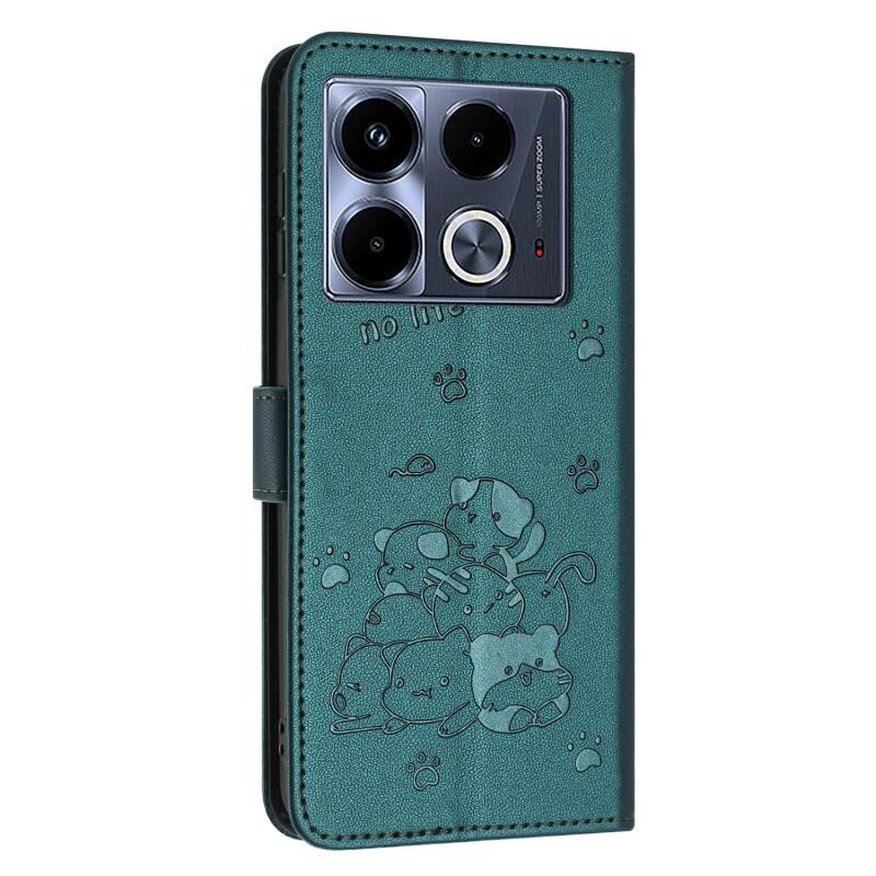 Θήκη δερμάτινη για Infinix Note 40 4G με ανάγλυφο σχέδιο γατάκι και κορδόνι (Μωβ)