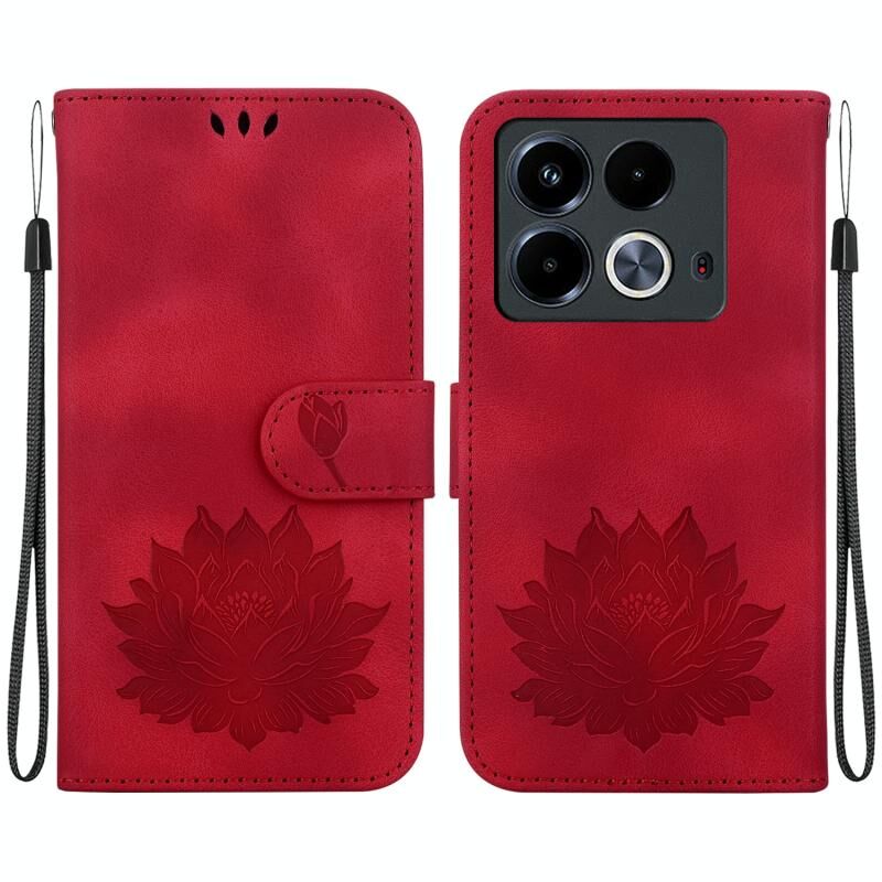 Για Infinix Note 40 4G Lotus ανάγλυφη δερμάτινη θήκη τηλεφώνου (κόκκινο)