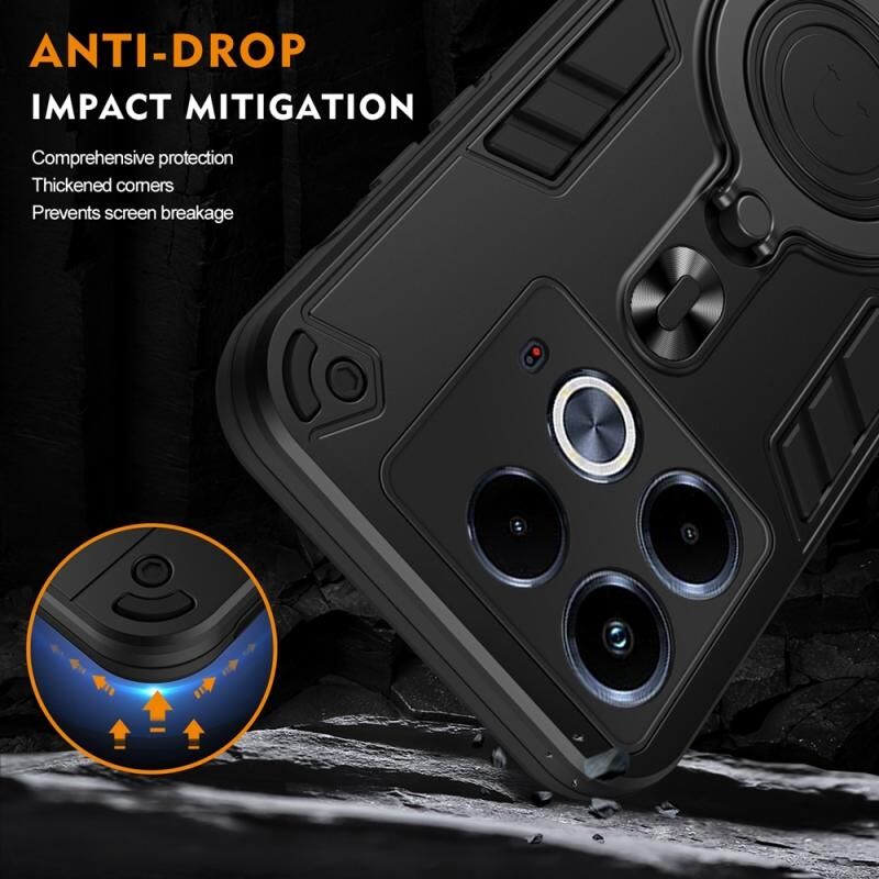 Για Infinix Σημείωση 40 4G μεταλλικό δαχτυλίδι 360 μοίρες περιστρεφόμενη κάτοχος PC υβριδικό TPU τηλέφωνο υπόθεση (μαύρο)