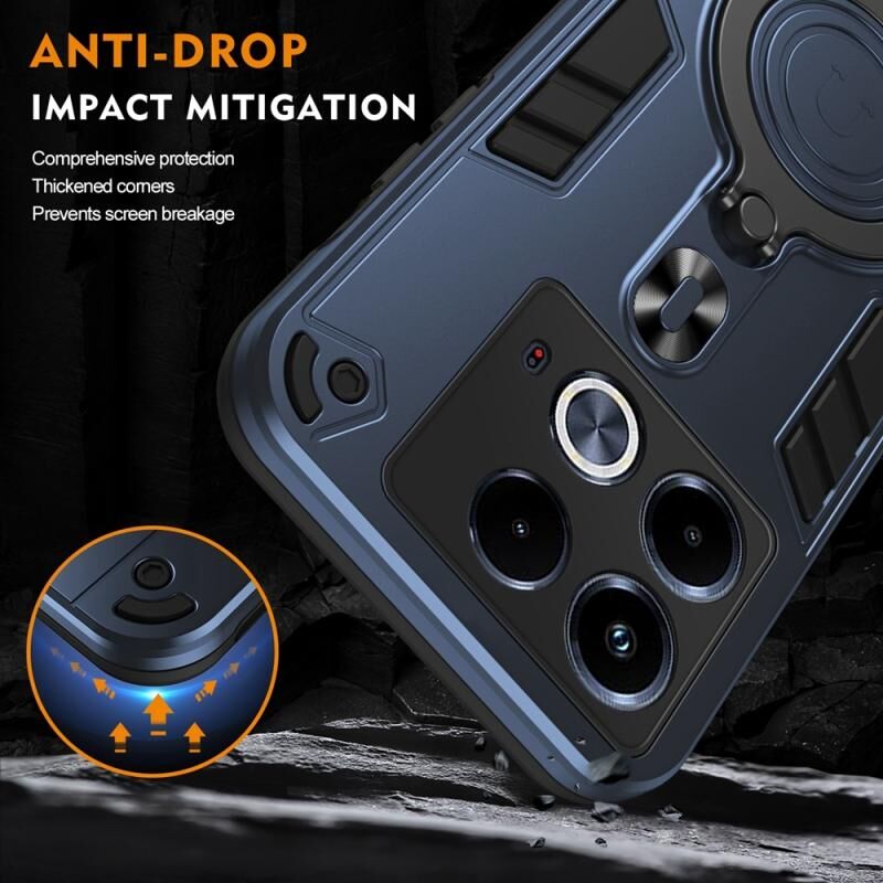 Για Infinix Σημείωση 40 4G μεταλλικό δαχτυλίδι 360 μοίρες περιστρεφόμενη κάτοχος PC υβριδικό TPU τηλέφωνο υπόθεση (Navy Blue)