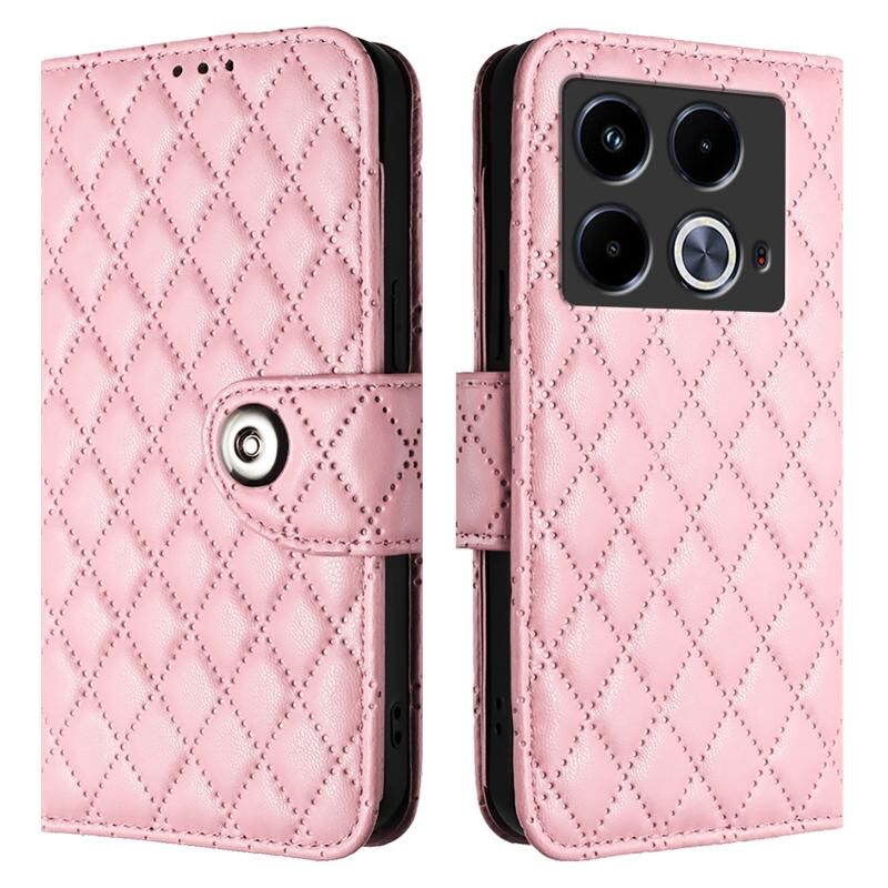 Για το Infinix Note 40 4G Rhombic Texture Flip δερμάτινη θήκη τηλεφώνου με κορδόνι (ροζ)