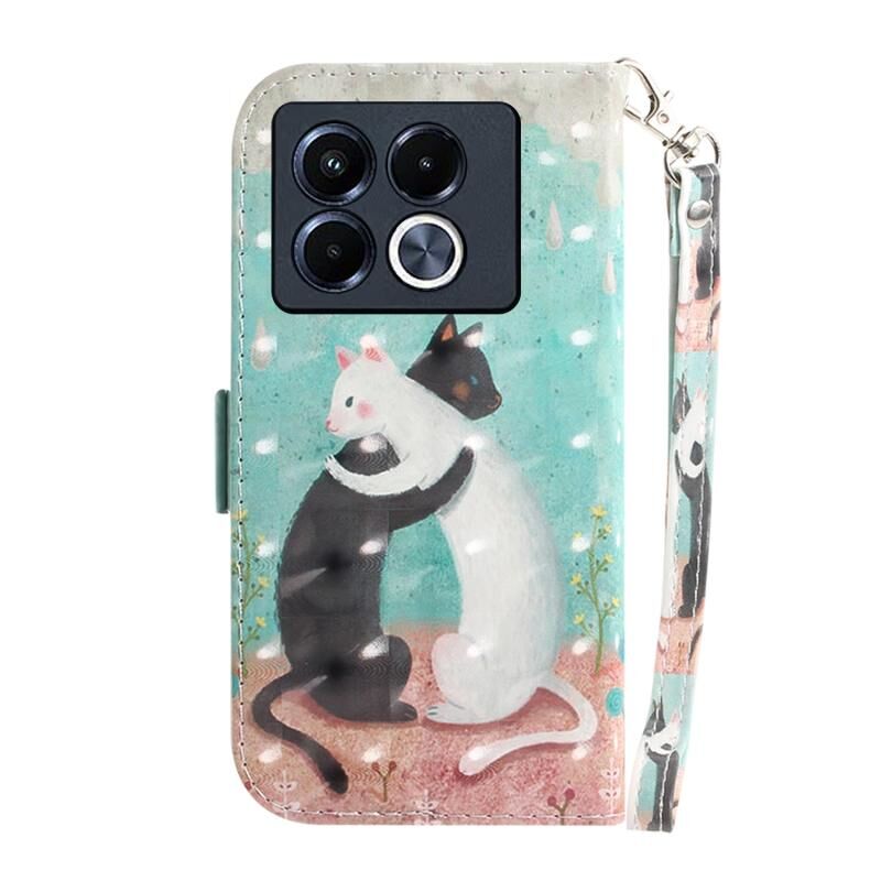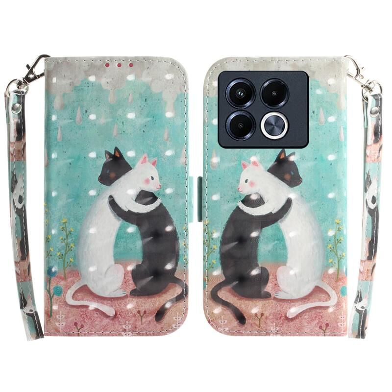 Θήκη τηλεφώνου από δέρμα με οριζόντιο άνοιγμα και έγχρωμο 3D σχέδιο για Infinix Note 40 5G (Μαύρη Λευκή Γάτα)