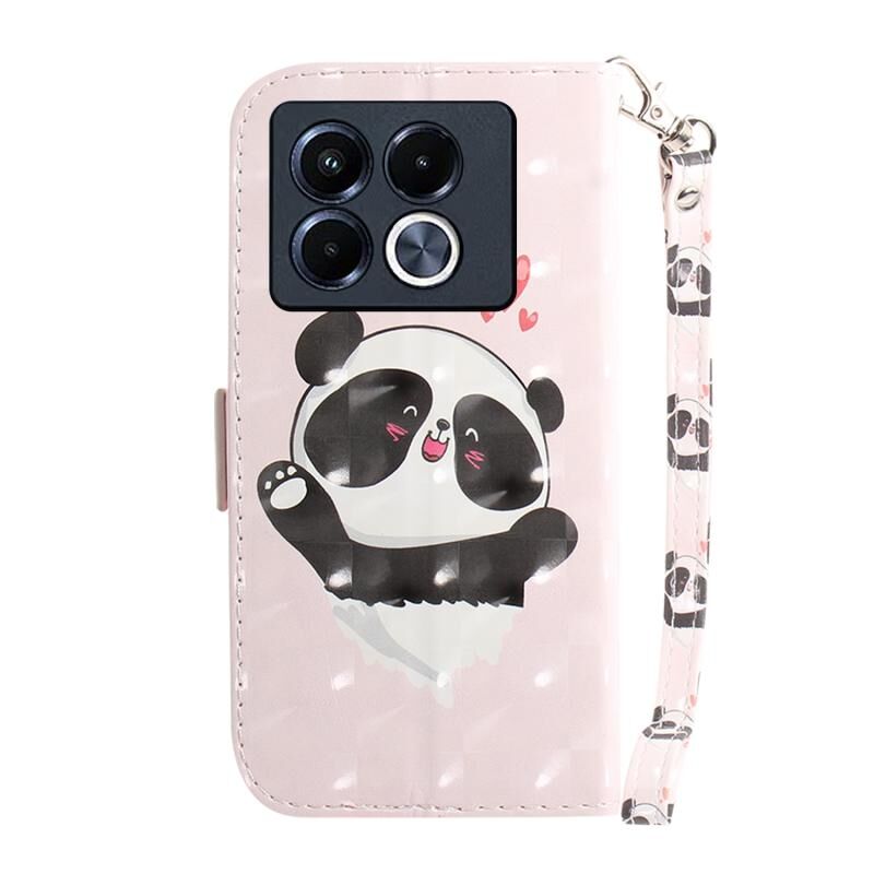 Θήκη τηλεφώνου δερμάτινη, οριζόντια, αναδιπλούμενη, με τρισδιάστατο χρωματιστό σχέδιο για Infinix Note 40 5G (Heart Panda)