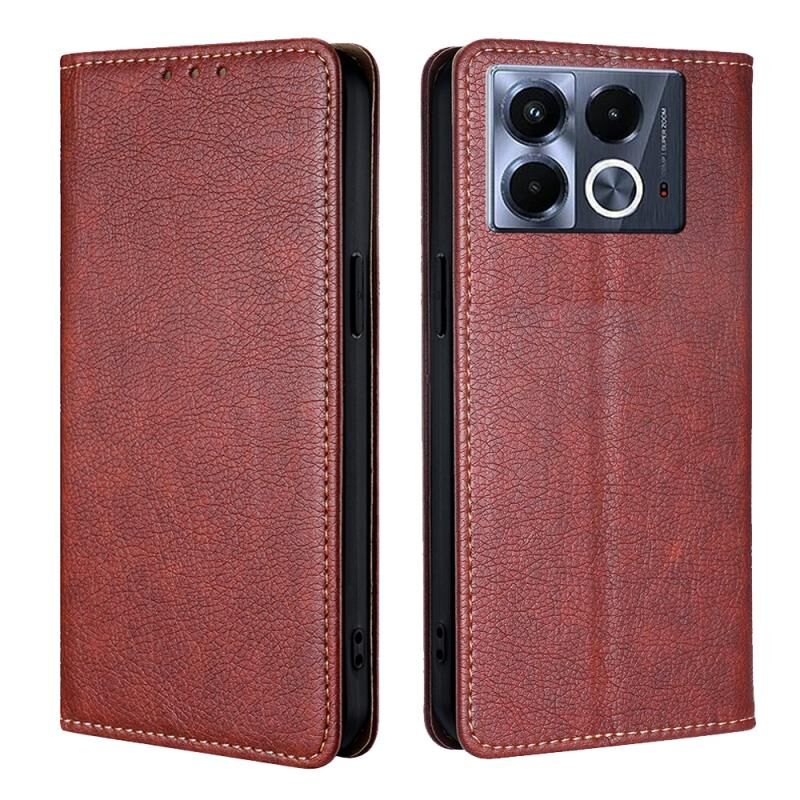 Για Infinix Σημείωση 40 5G Γυαλιστερό λάδι στερεό χρώμα μαγνητική δερμάτινη θήκη τηλεφώνου (καφέ)