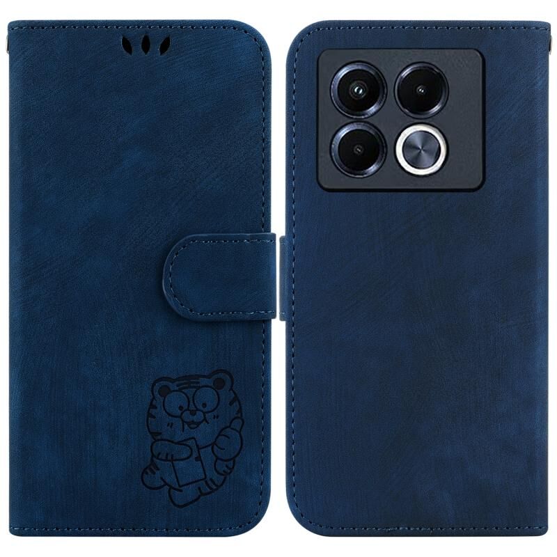 For Infinix Note 40 5G Little Tiger Embossed Leather Phone Case(Dark Blue)