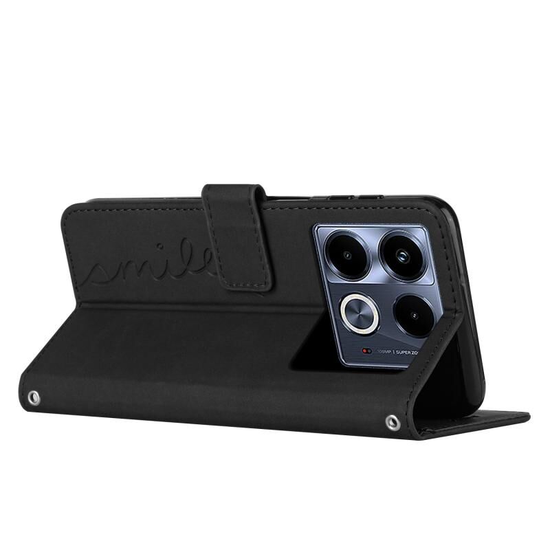 Για το Infinix Note 40 5G Skin Feel Heart ανάγλυφη δερμάτινη θήκη τηλεφώνου με μακρύ κορδόνι (μαύρο)