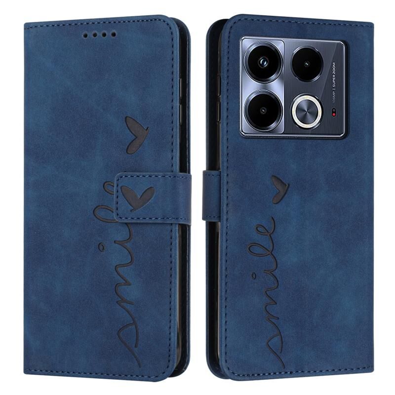 Για το Infinix Note 40 5G Skin Feel Heart ανάγλυφη δερμάτινη θήκη τηλεφώνου με μακρύ κορδόνι (μπλε)