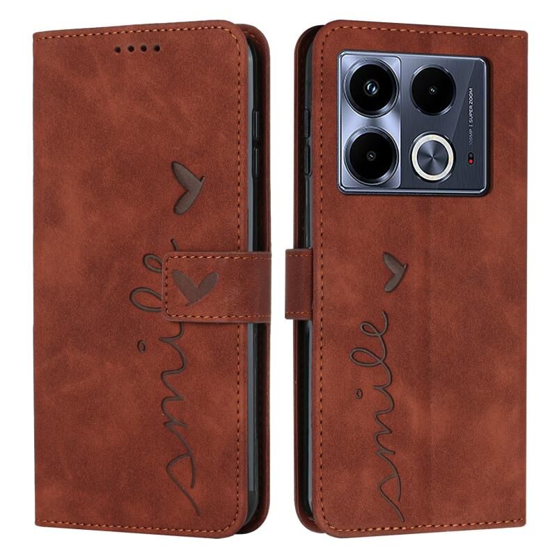 Για το Infinix Note 40 5G Skin Feel Heart ανάγλυφη δερμάτινη θήκη τηλεφώνου με μακρύ κορδόνι (καφέ)
