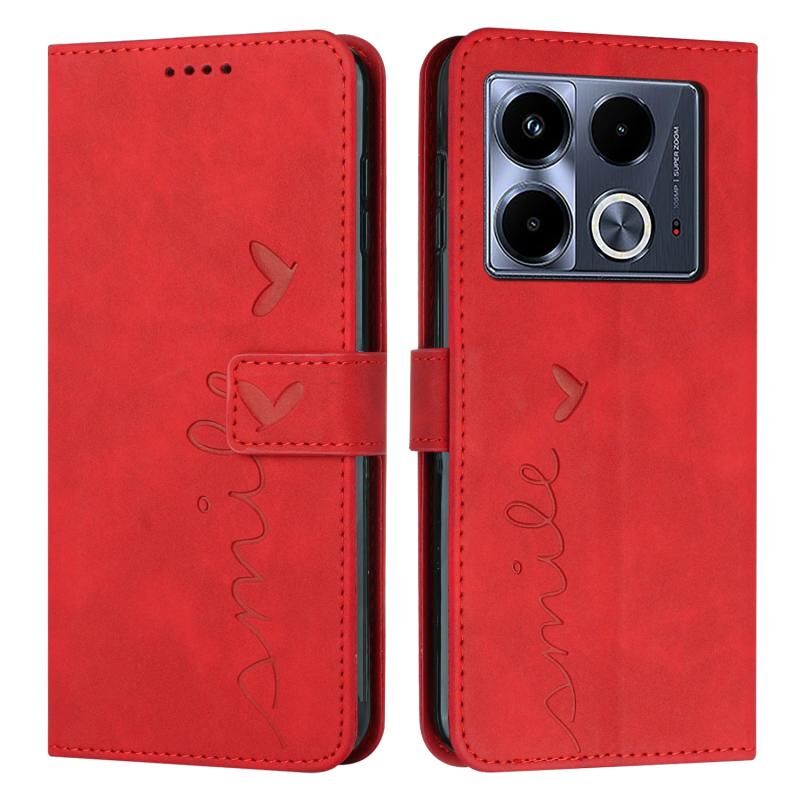 Για το Infinix Note 40 5G Skin Feel Heart ανάγλυφη δερμάτινη θήκη τηλεφώνου με μακρύ κορδόνι (κόκκινο)