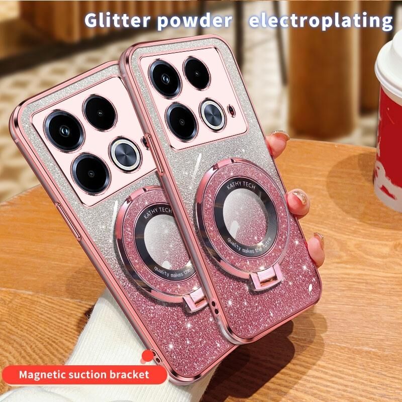 Για Infinix Σημείωση 40 επιμεταλλωμένο διαβάθμιση Glitter στρογγυλή κάτοχος TPU τηλέφωνο υπόθεση (Sierra Blue)