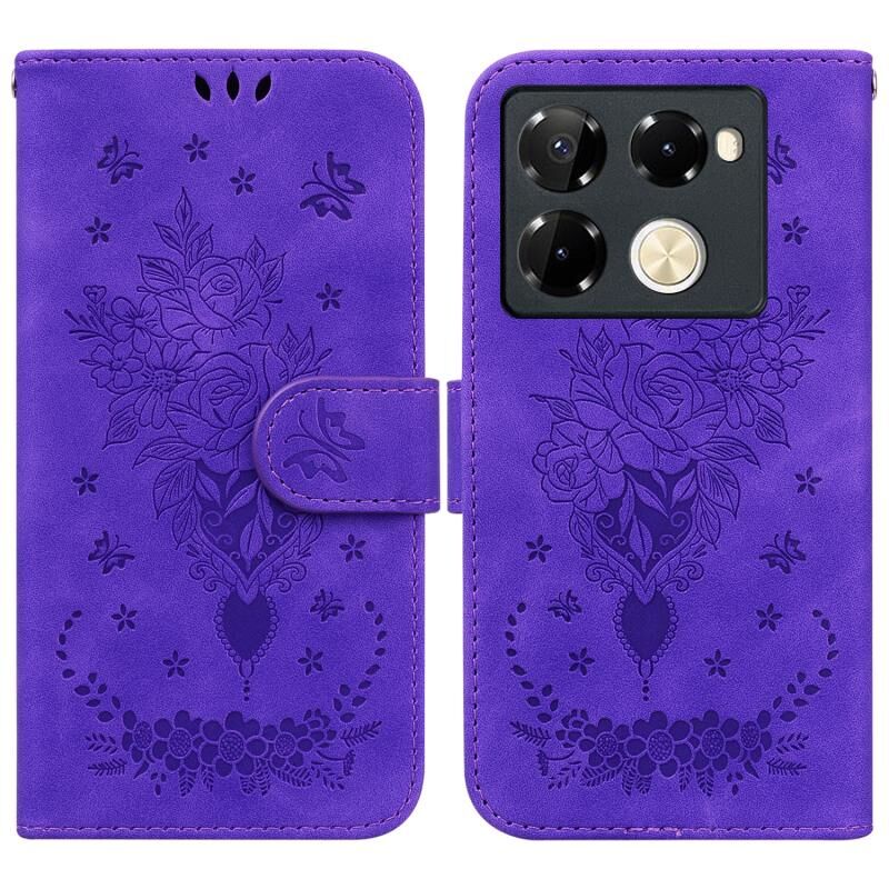 Για Infinix Σημείωση 40 Pro 4G / 5G πεταλούδα Rose ανάγλυφο δέρμα τηλέφωνο υπόθεση (μωβ)