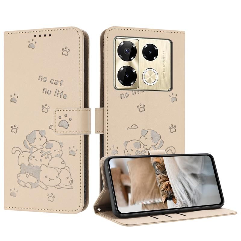 Θήκη δερμάτινη για Infinix Note 40 Pro 4G / 5G με ανάγλυφο σχέδιο γατάκι και κορδόνι (Μπεζ)