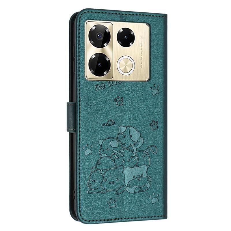 Θήκη δερμάτινη για Infinix Note 40 Pro 4G / 5G με ανάγλυφο σχέδιο γατάκι και λουρί (Μωβ)