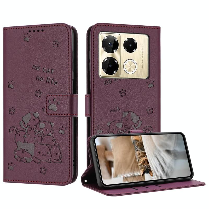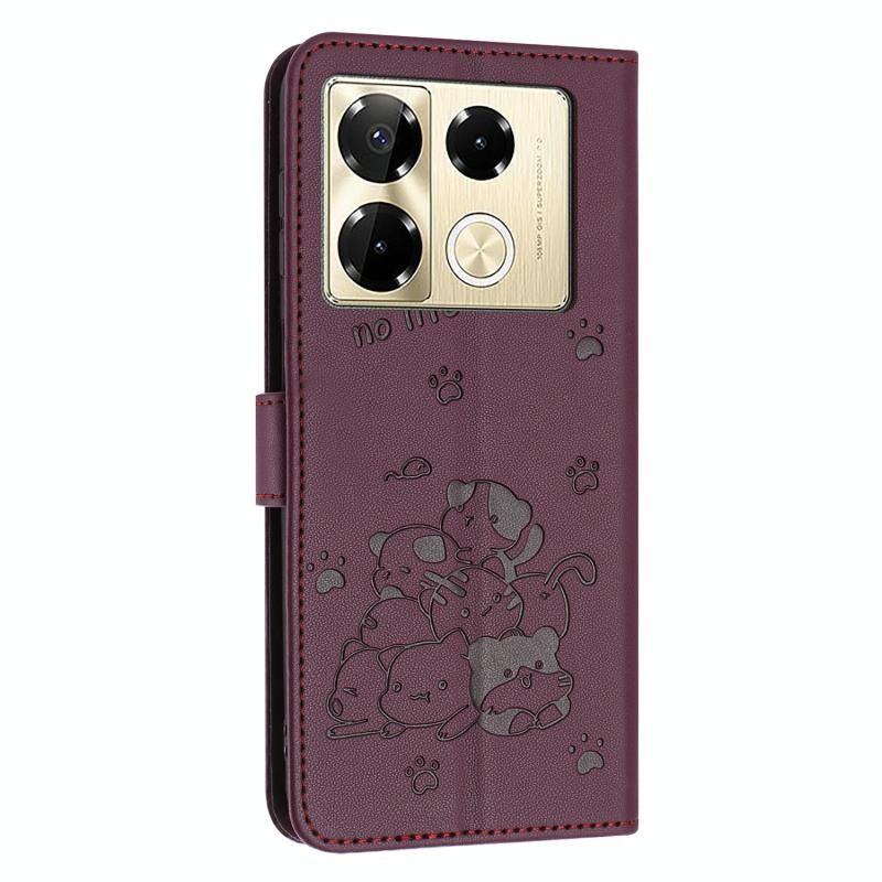 Θήκη δερμάτινη για Infinix Note 40 Pro 4G / 5G με ανάγλυφο σχέδιο γατάκι και λουρί (Μωβ)