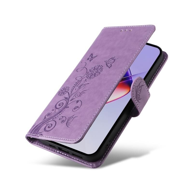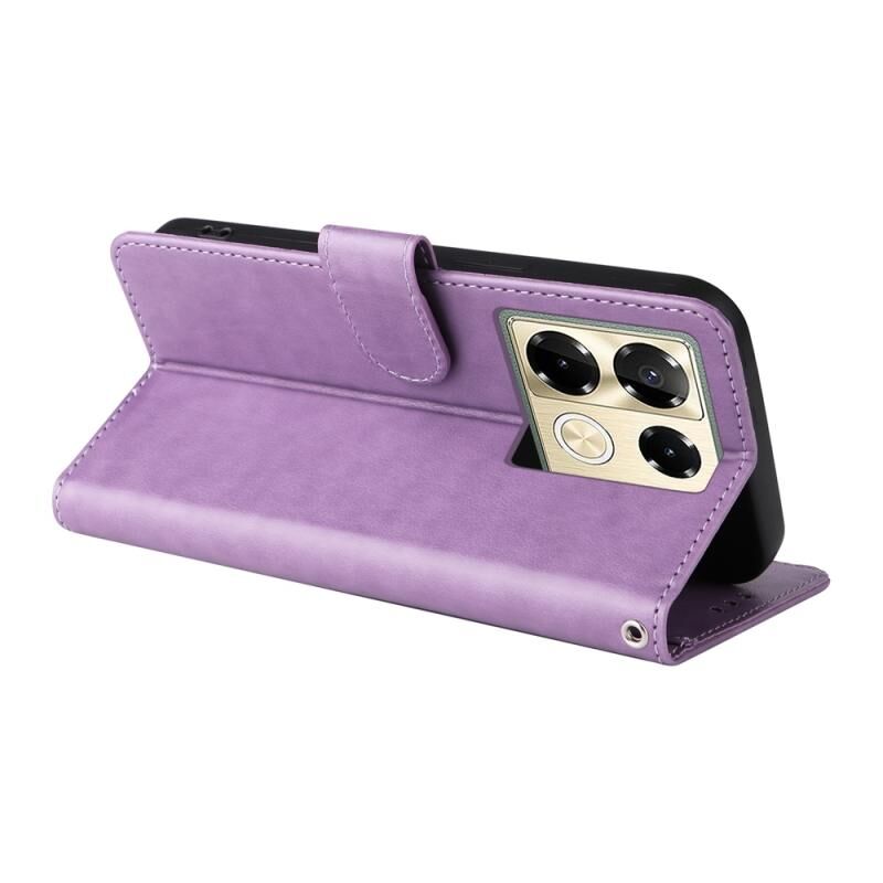 Θήκη τηλεφώνου από δέρμα με ανάγλυφα λουλούδια πεταλούδας για Infinix Note 40 Pro 4G / 5G / Note 40 Pro+ (Μωβ)