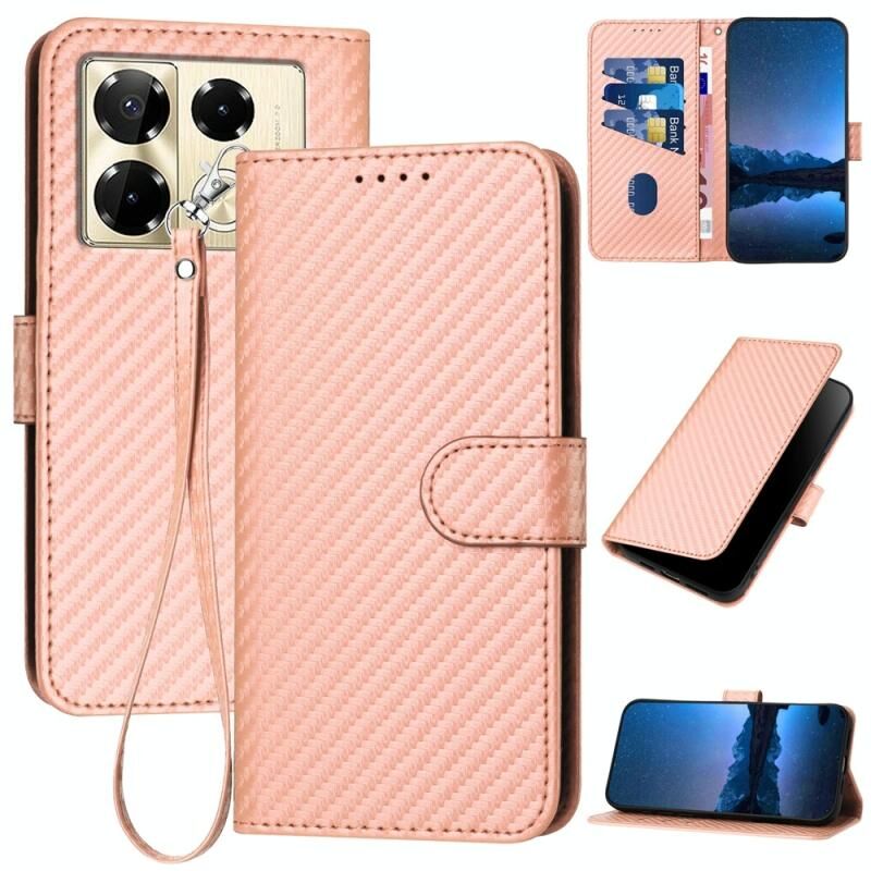 Για το Infinix Note 40 Pro 4G / 5G YX0070 Carbon Fiber πόρπη δερμάτινη θήκη τηλεφώνου με κορδόνι (ροζ)