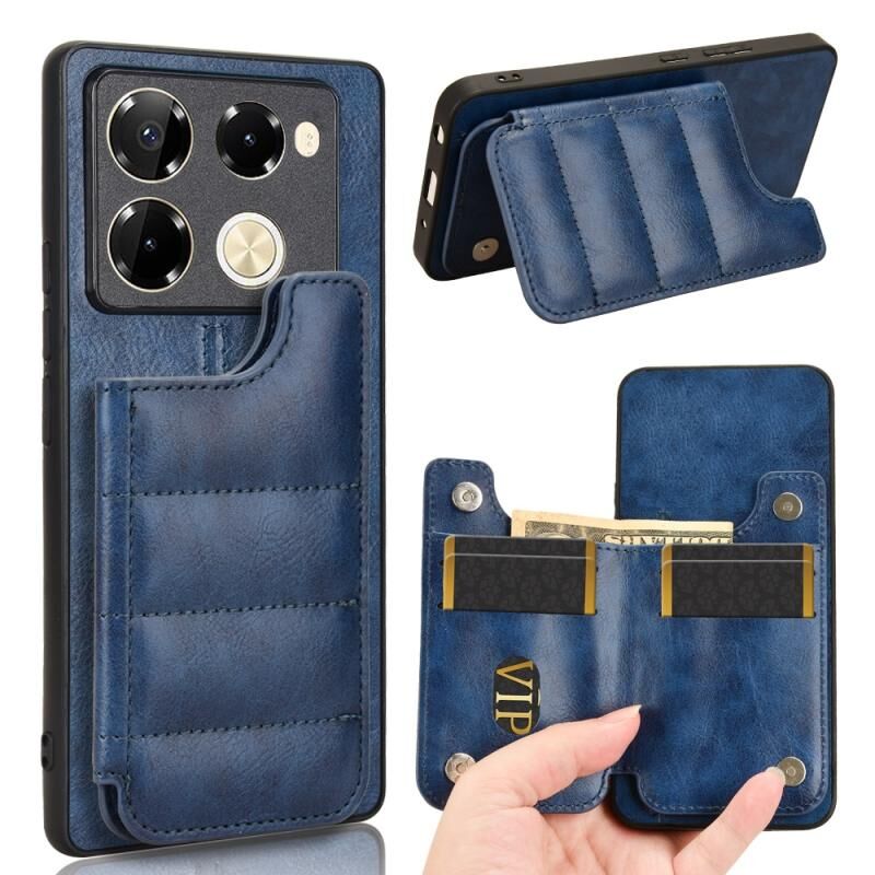 Για Infinix Σημείωση 40 Pro 4G αγελάδα μοτίβο ραπτικής κάρτα τσάντα υπόθεση τηλεφώνου (μπλε)