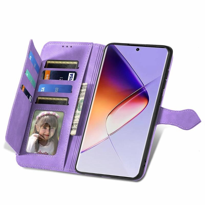 Για Infinix Σημείωση 40 Pro 4G ανάγλυφο λουλούδι φερμουάρ δερμάτινη θήκη τηλεφώνου (μωβ)