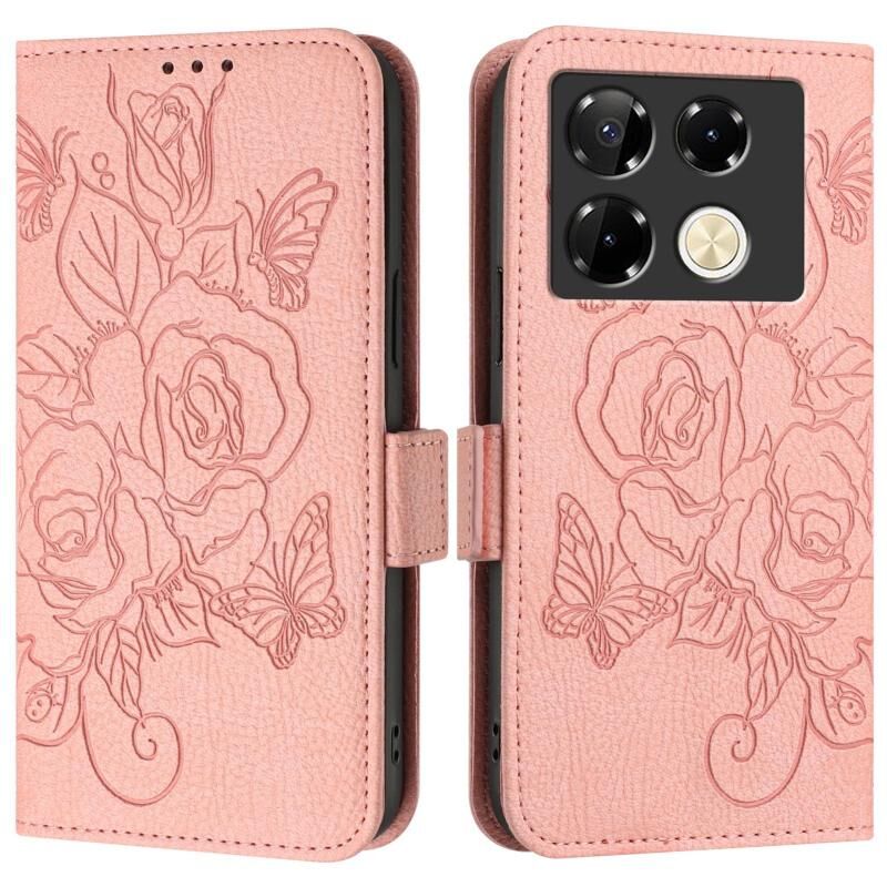 Για Infinix Σημείωση 40 Pro 4G ανάγλυφο Rose RFID Anti-theft δερμάτινη θήκη τηλεφώνου (ροζ)