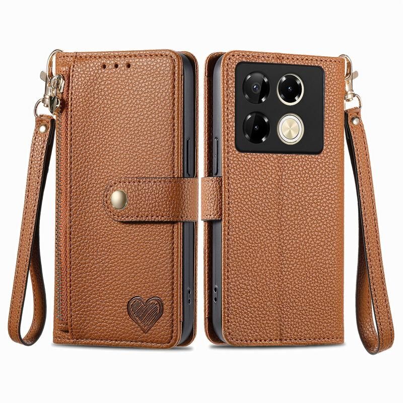 For Infinix Note 40 Pro 4G Love Zipper Lanyard Leather Phone Case(Brown)