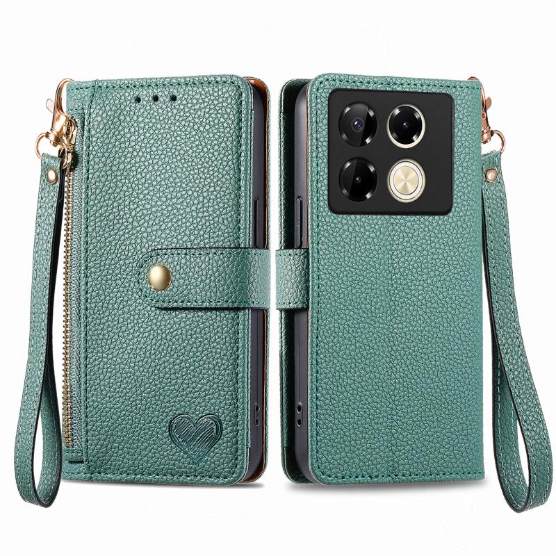 For Infinix Note 40 Pro 4G Love Zipper Lanyard Leather Phone Case(Green)