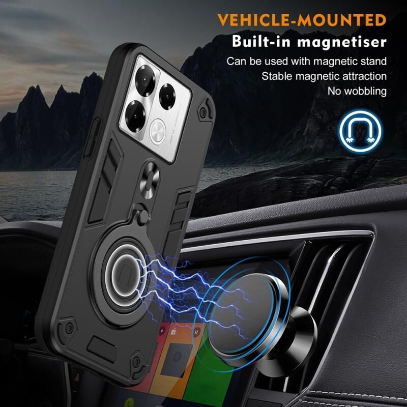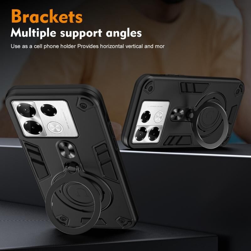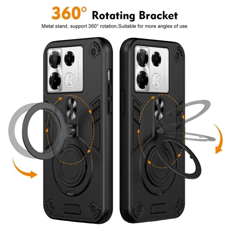 Για Infinix Note 40 Pro 4G μεταλλικό δαχτυλίδι 360 μοίρες περιστρεφόμενη κάτοχος PC υβριδικό TPU τηλέφωνο υπόθεση (μαύρο)