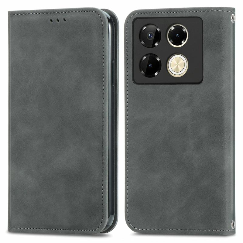 For Infinix Note 40 Pro 4G Retro Skin Feel Magnetic Flip Leather Phone Case(Grey)