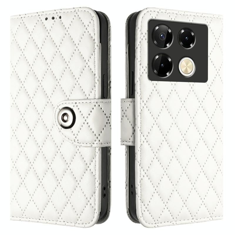 Για το Infinix Note 40 Pro 4G X6850 Rhombic Texture Flip δερμάτινη θήκη τηλεφώνου με κορδόνι (λευκό)