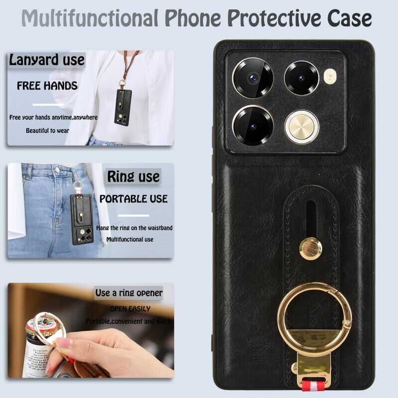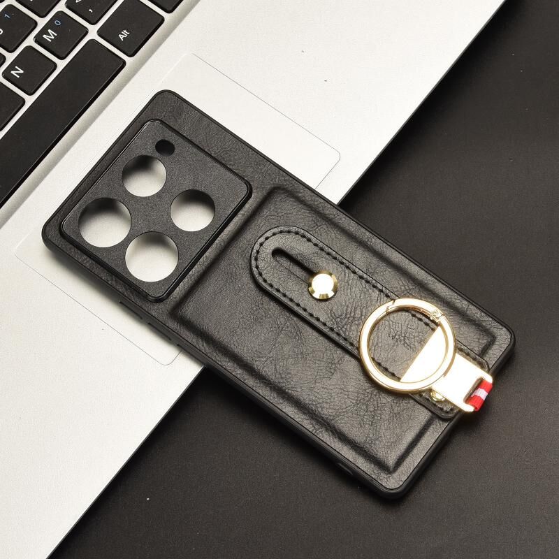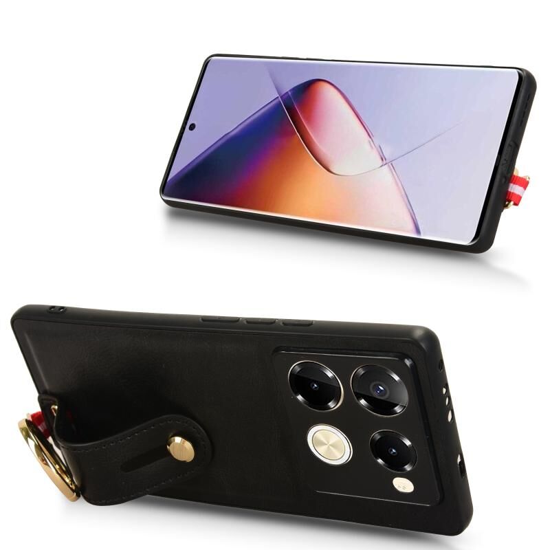 For Infinix Note 40 Pro 4G X6850 Wristband Leather Back Phone Case(Black)