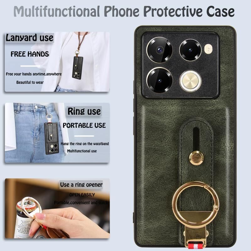 For Infinix Note 40 Pro 4G X6850 Wristband Leather Back Phone Case(Green)