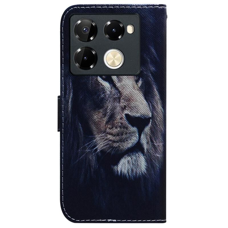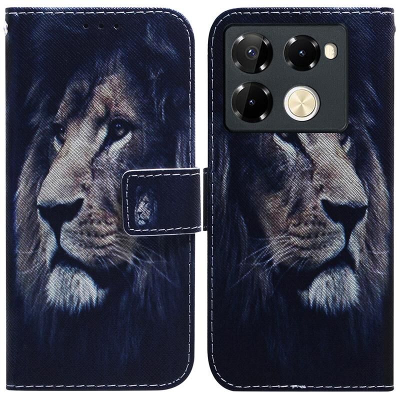 Θήκη τηλεφώνου από δέρμα με σχέδιο και αναδιπλούμενο καπάκι για Infinix Note 40 Pro 5G / 40 Pro 4G (Λιοντάρι)