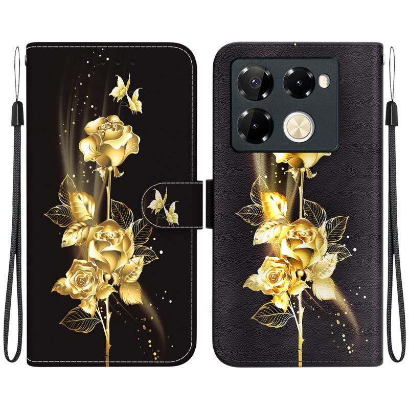 For Infinix Note 40 Pro 5G / 40 Pro 4G Crystal Texture Colored Drawing Leather Phone Case(Gold Butterfly Rose)