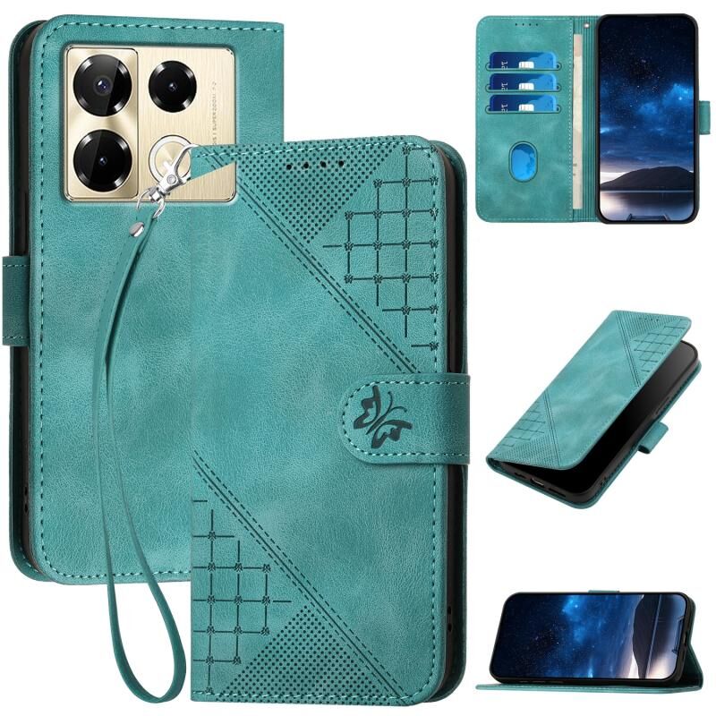 Θήκη τηλεφώνου δερμάτινη με ανάγλυφο σχέδιο Grid Butterfly για Infinix Note 40 Pro+ 5G με κορδόνι (Σκούρο Μπλε)