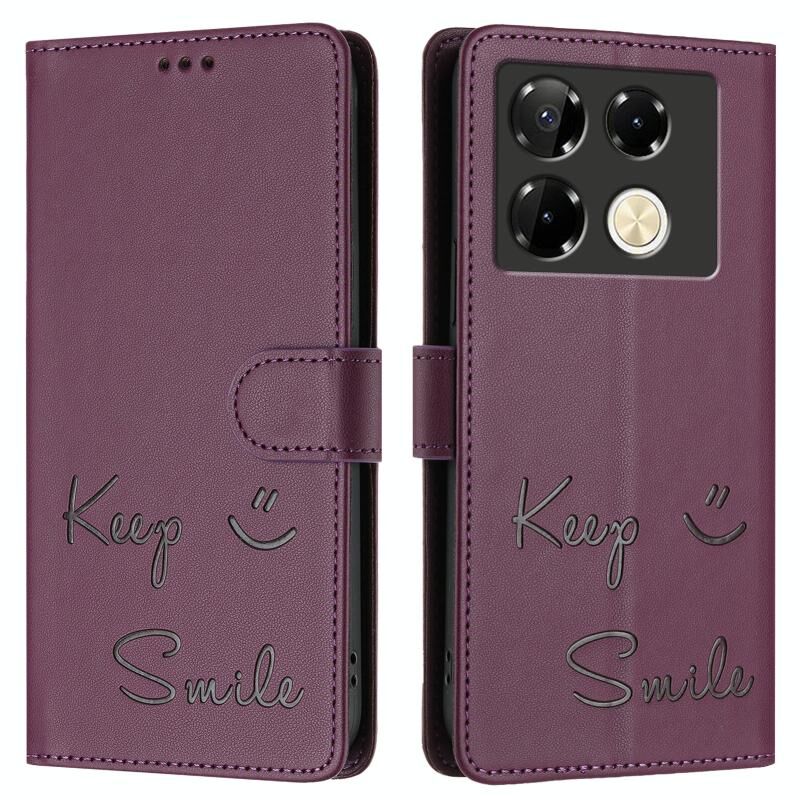 Για Infinix Σημείωση 40 Pro 5G X6851 Χαμόγελο ανάγλυφο RFID δερμάτινη θήκη τηλεφώνου (Violet)