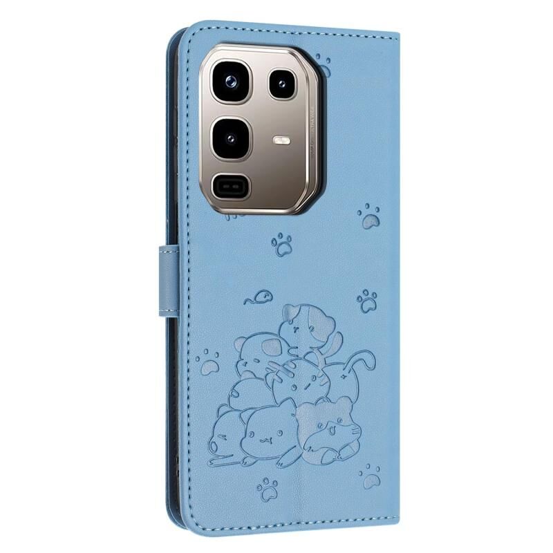Θήκη δέρματος τηλεφώνου με ανάγλυφο γατάκι και λουρί για Infinix Note 50 4G / 50 Pro 4G (Μωβ)