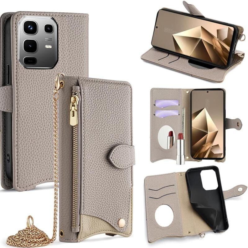 For Infinix Note 50 4G Crossbody Chain Fishtail Litchi Leather Phone Case(Grey)