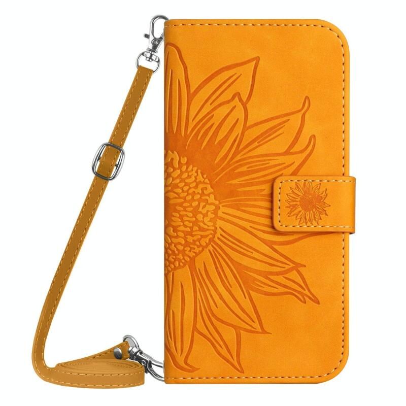 Θήκη τηλεφώνου από δέρμα με ανάγλυφο ηλιοτρόπιο και λουρί για Infinix Note 50 Pro 4G / Note 50 4G (Μωβ)